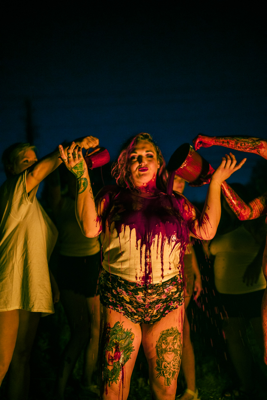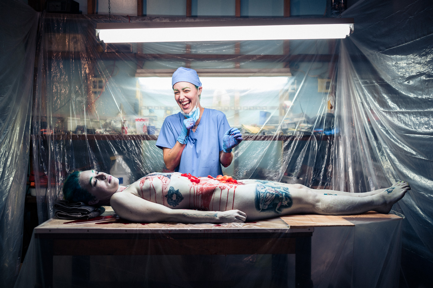These images are meant to stand in opposition to horror’s long-standing reliance on violence against women. When women appear in perilous situations, they are framed as agents rather than victims. If a concept requires danger, I try to show that it is being embraced with humor and enjoyment rather than fear.
