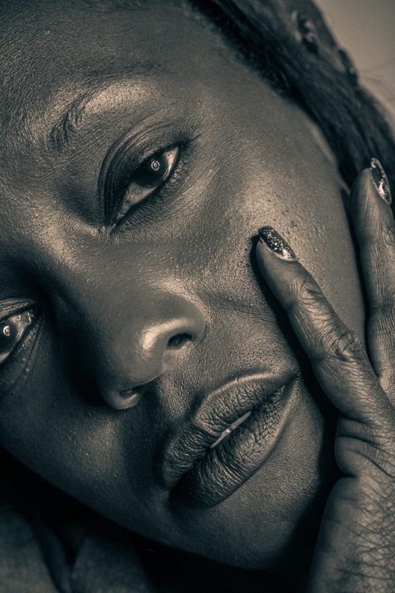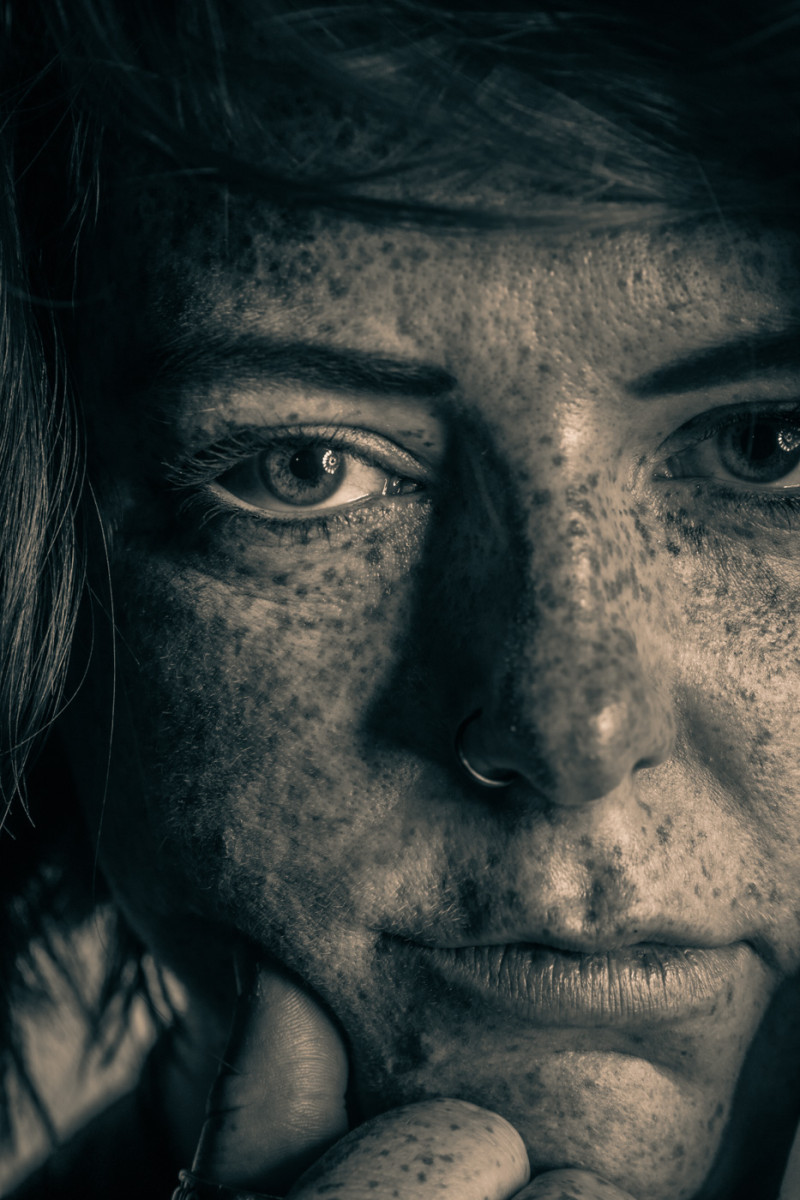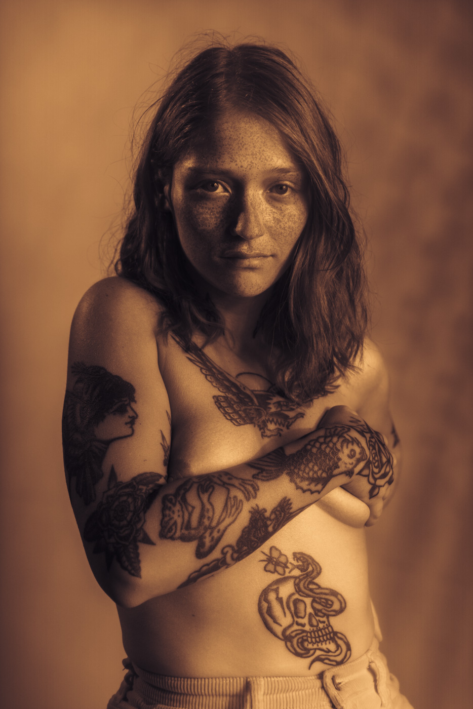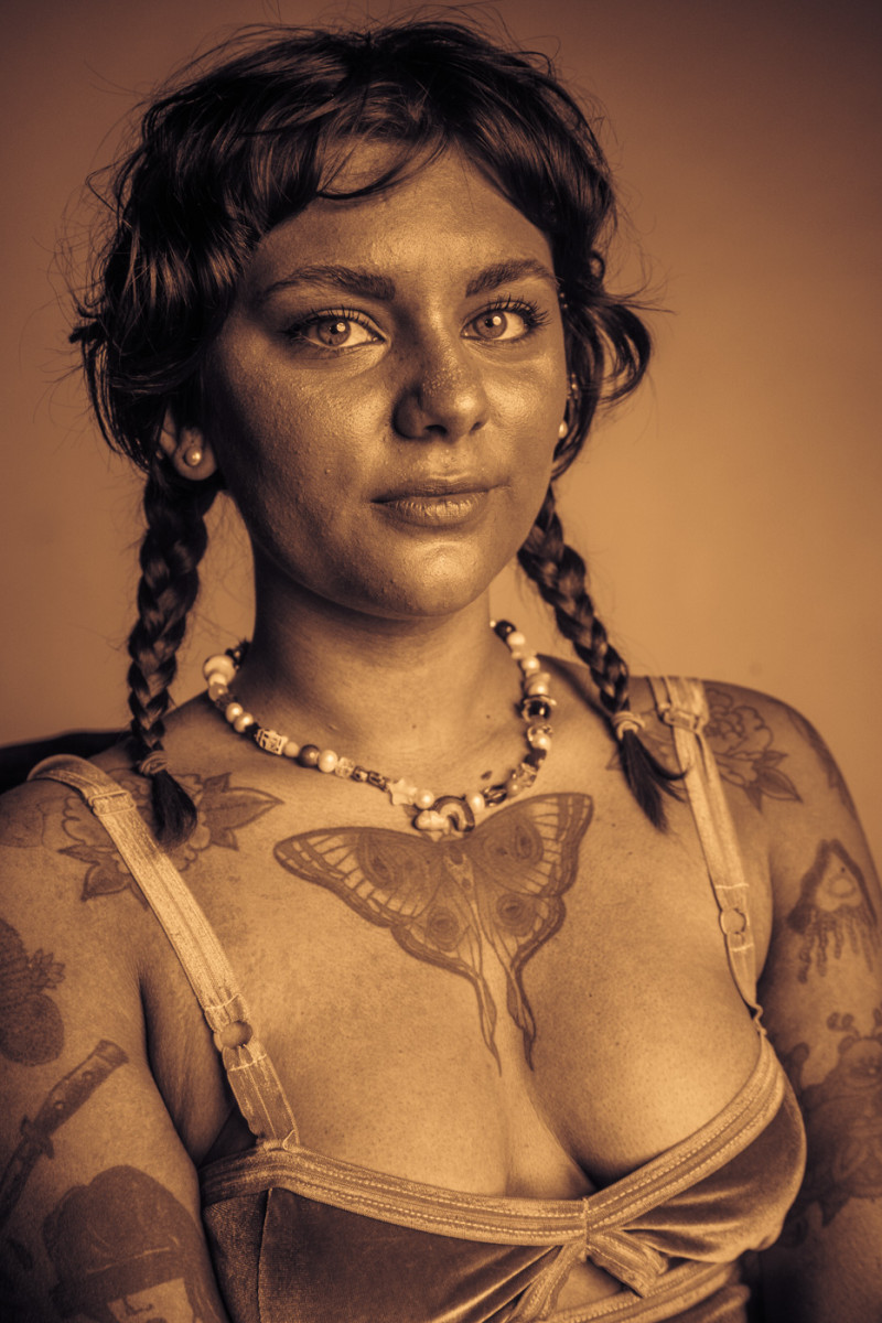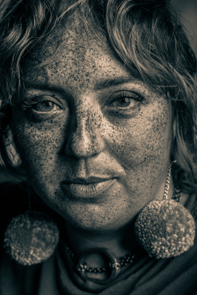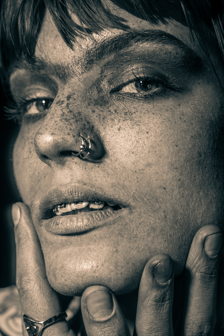 My modified camera works in much the same way. It records only ultraviolet light, producing images that fall outside ordinary vision. Ultraviolet portraiture is often avoided, believed to exaggerate so-called imperfections. I don’t share that belief. I don’t believe in flaws. What ultraviolet reveals, to me, is a different kind of presence — a beauty that exists just beyond what we’re taught to recognize.